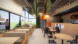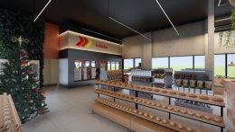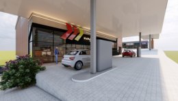 Reforma de loja de conveniência de posto no interior do Paraná, na cidade de Irati. Desenvolvimento do projeto da fachada, e interiores completo. Ao lado da construção desenvolvemos o estudo de um centro comercial para 20 lojas, com área de estacionamento, mezanino e escritório.