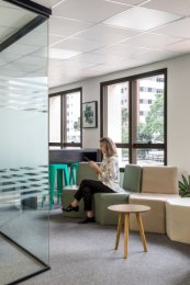 Com mais de 10 anos de empresa, tinha como sua sede uma casa de quase 900m² e o nosso desafio foi fazer a mudança da sede para uma sala comercial de 250m² de forma a preservar a identidade da empresa, e o conforto para seus colaboradores.