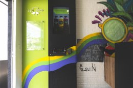 Para o projeto, criamos a identidade de marca transparecendo os valores da marca no espaço. Os pontos principais foram o maior aproveitamento do espaço externo, com otimização do espaço e criação de totem de comunicação visual. E na parte interna melhoramos a experiência do cliente, otimizando o espaço da loja com a criação de um totem de auto atendimento, e a nova decoração do espaço, explorando as cores da marca, e a jovialidade através do painel desenvolvido pelo artista Guaen. O charme fica para o novo balcão, que tem uma floreira onde é possível deixar as plantas aromáticas que são utilizadas nas receitas, e deixar o ambiente mais aconchegante.