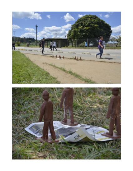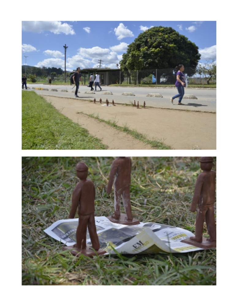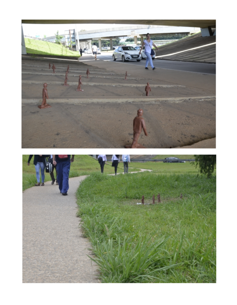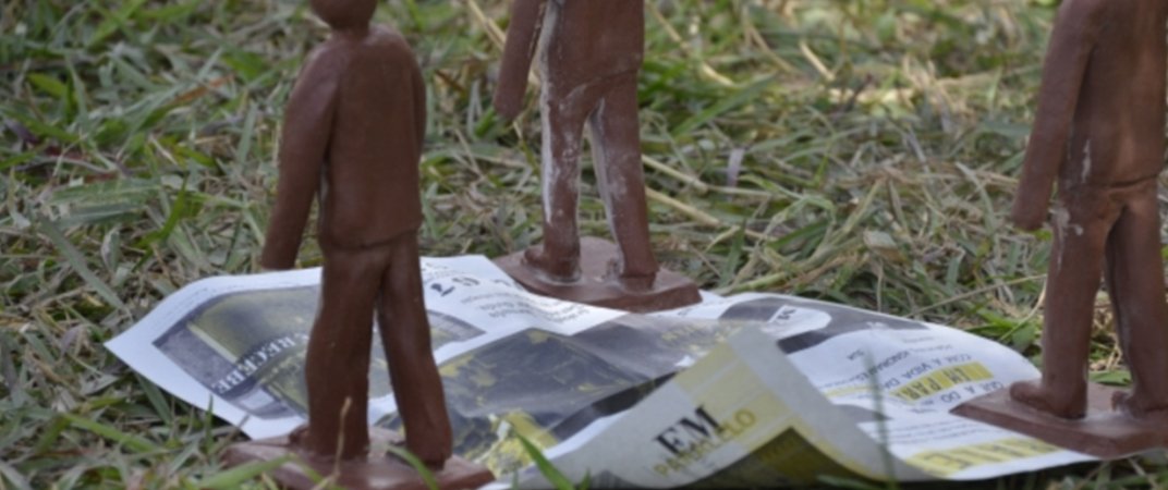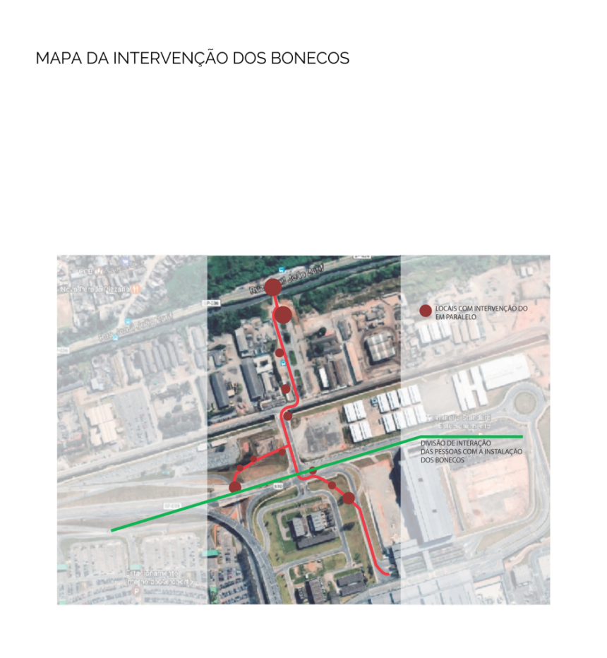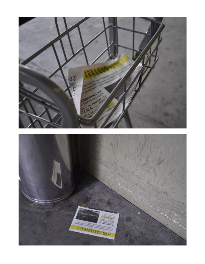 O projeto EM PARALELO propôs instalações que trazem à tona a ideia de “algo que ocorre simultaneamente a outra realidade”. O objetivo é ressaltar a problemática do Trabalho escravo que com frequência é invisibilizado. Para isso a equipe propõem a utilização de elementos e linguagens corriqueiros na sinalização utilizada nas obras de construção civil que, porém, contenha informações de proibição e perigo que denunciam as condições e a ilegalidade do regime de trabalho.