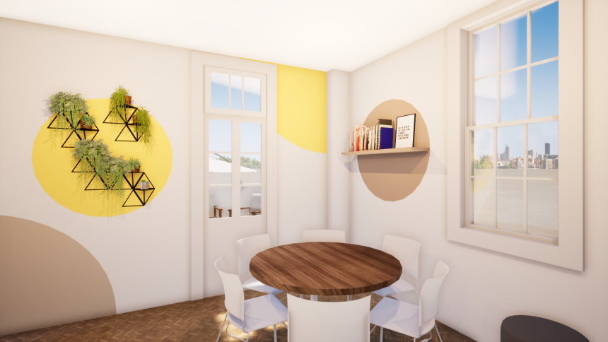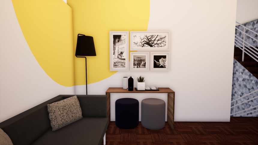 Desenvolvemos todo o novo projeto, mantendo algumas linguagens do prédio que é uma casa antiga localizada na Av Batel, como o pé direito alto, as janelas grandes e com molduras e o piso de taco de madeira. Valorizamos os pilares da empresa, como o que mais de destaca que é o sentimento de proximidade que existe entre os colaboradores.