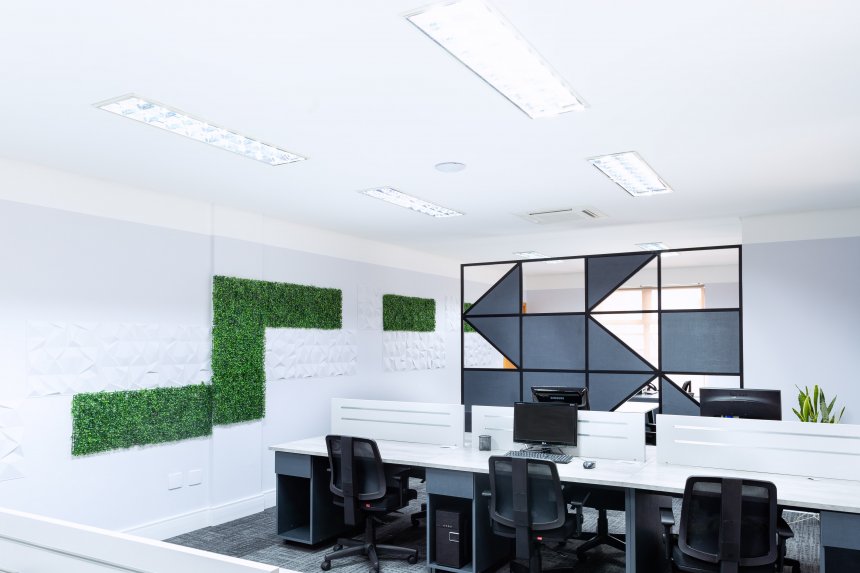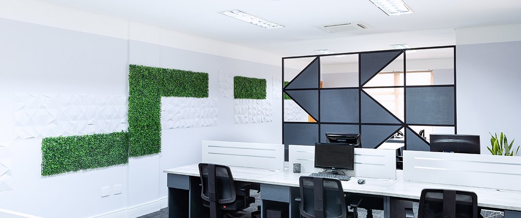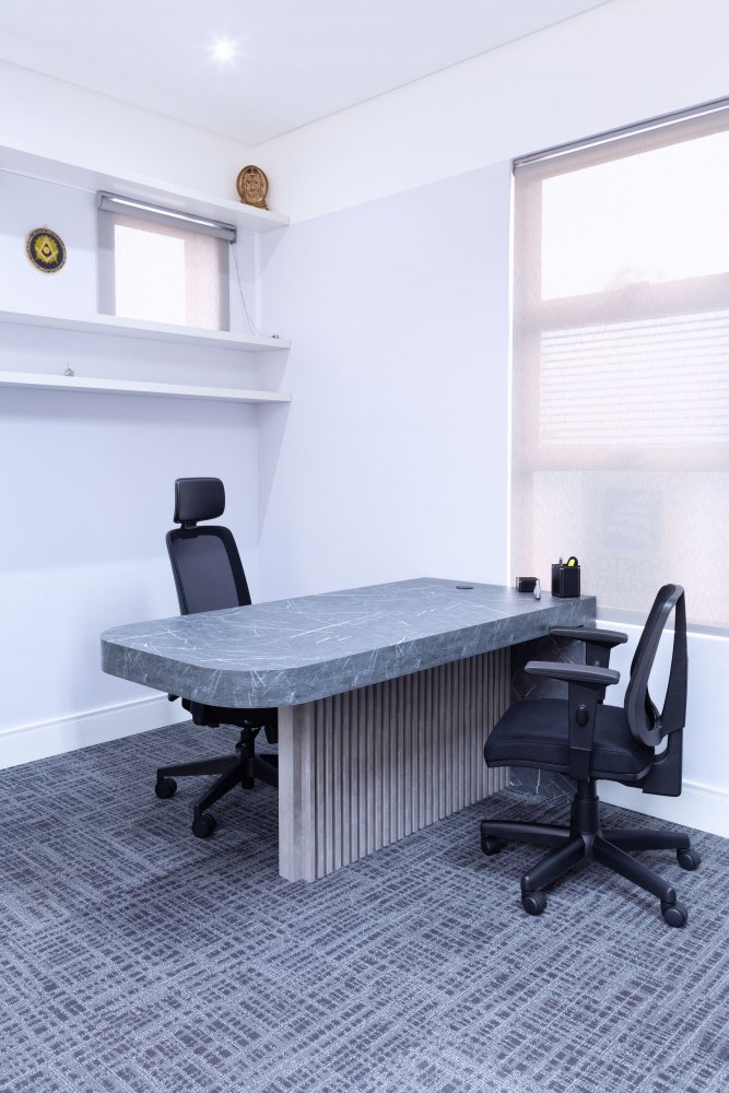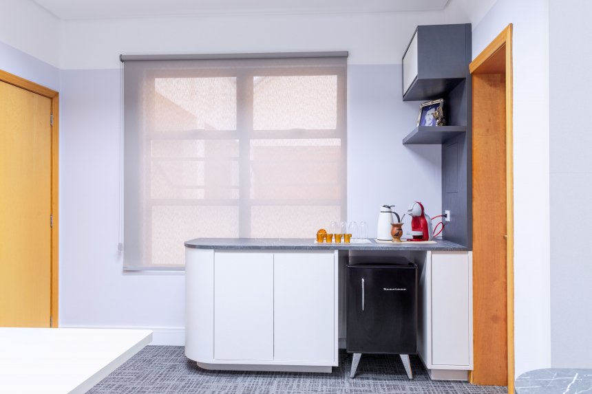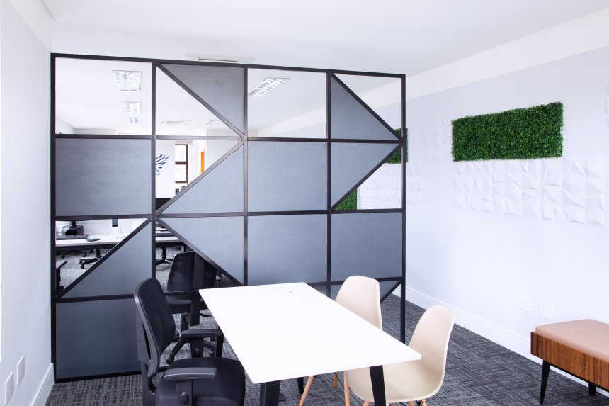 Desenvolvemos o projeto das novas salas, criando áreas de atendimento e reunião que antes não existiam, além de um espaço mais organizado e funcional para as atividades do dia a dia do escritório. O projeto foi criado pensando em todo conforto visual, térmico e acústico do ambiente, mas também na proposta de valor da empresa e nos seus colaboradores.