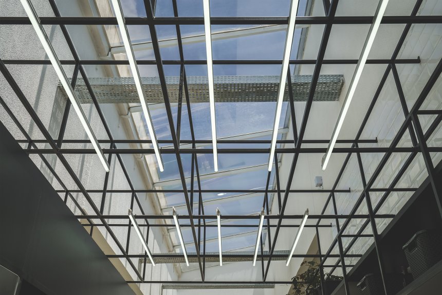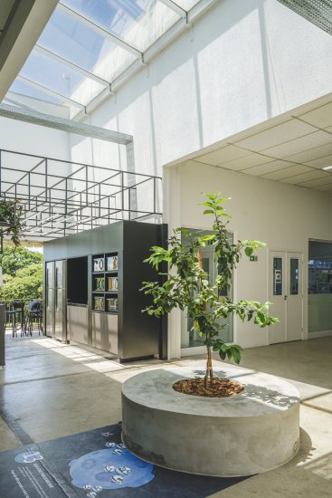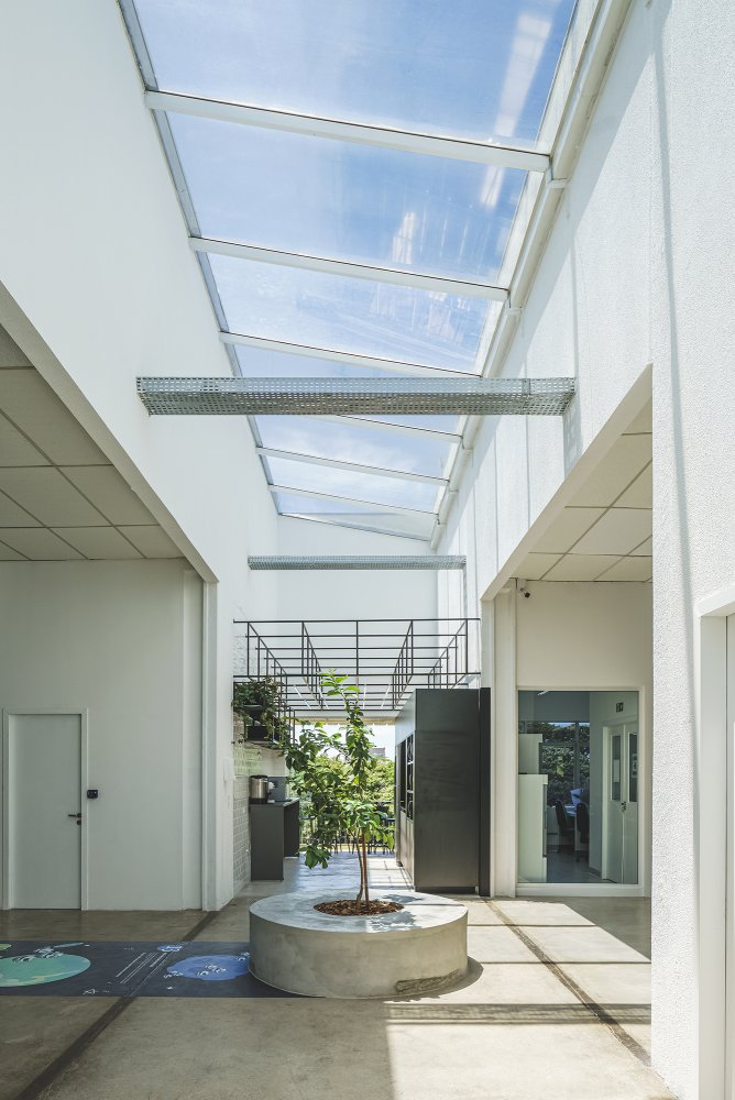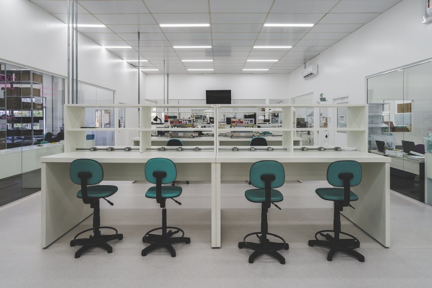 Desenvolvemos todo o novo projeto, que é um mix de laboratório, fábrica e escritório, valorizando alguns dos pilares da empresa, dinamismo e inovação. O tem a leveza de um ambiente descontraído e jovem, com espaço para inovação, mas ao mesmo tempo mostra a imponência dessa startup com esse propósito incrível.
