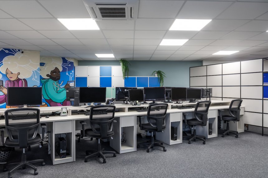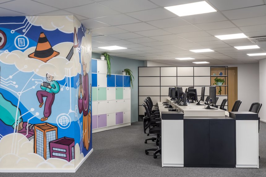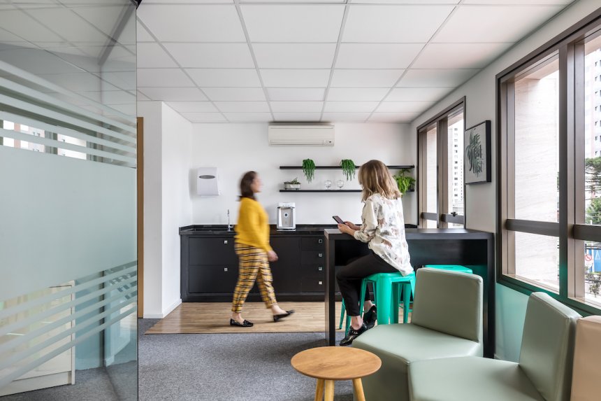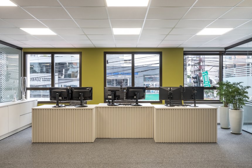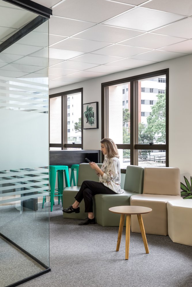 O projeto presou pela fluidez do espaço, conexão entre as áreas, conforto e a identidade leve e alegre que a empresa sempre teve.