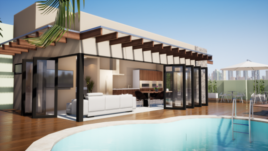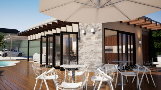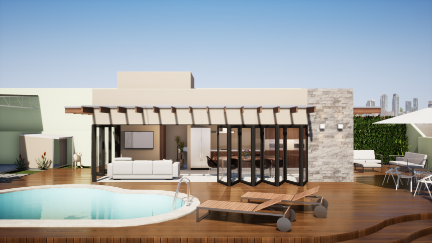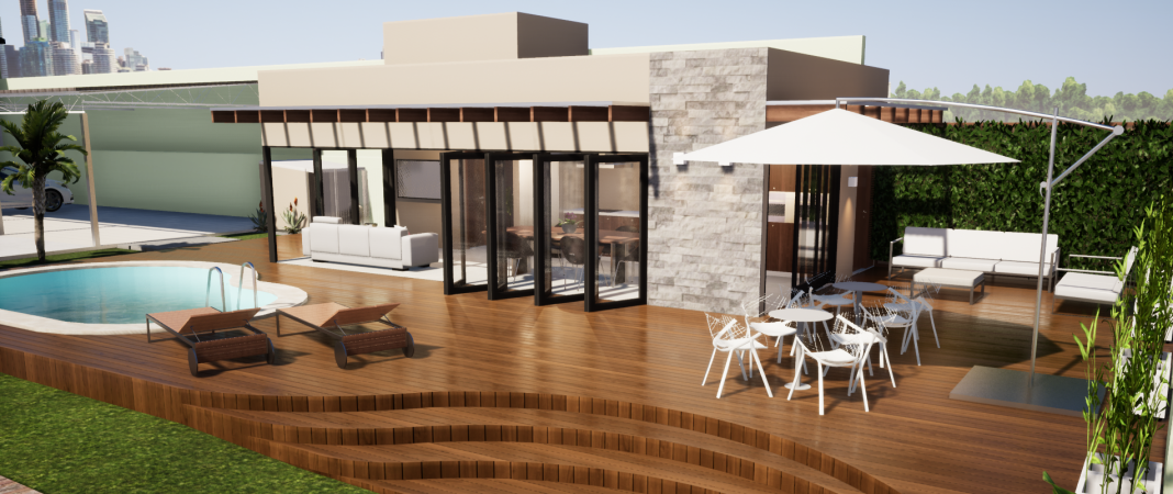Projeto de constução da área da churrasqueira com piscina.