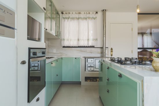 Como a proprietária tinha o desejo de aumentar o espaço, por isso a decisão foi de reconstruí-la e para acrescentar o segundo pavimento, mantendo as características originais da casa. Resgatamos cores próximas as cores originais da casa, mantivemos o desenho original, e detalhes como os quartzos na fachada.