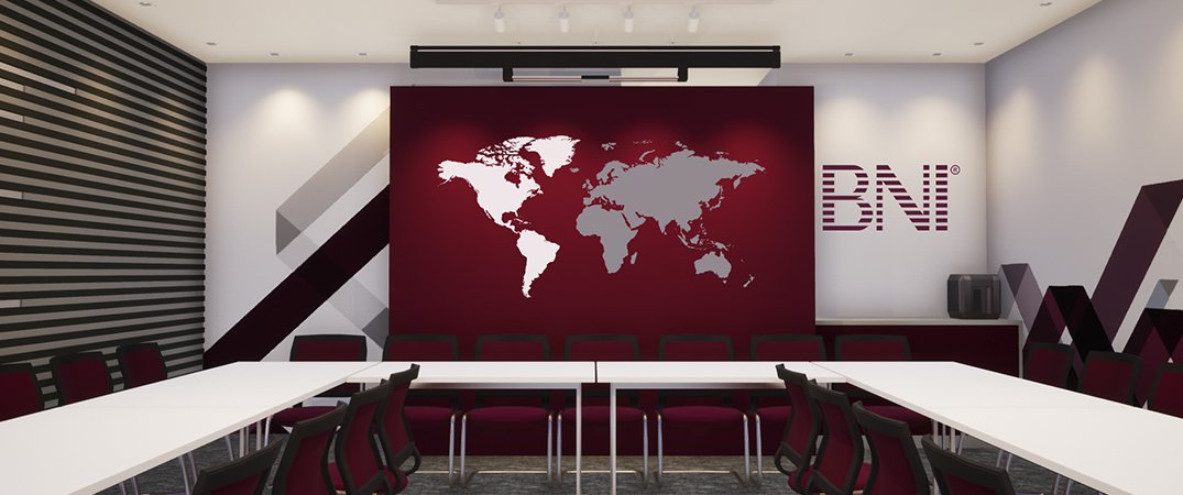 Projeto de criação de identidade para sala de eventos e reuniões destinadas ao grupo de Networking BNI em Maringá - Pr.